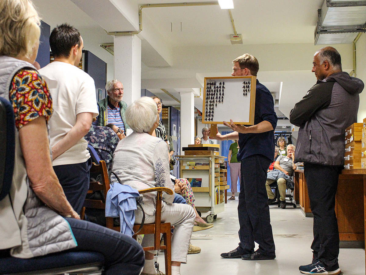 Im Anschluss öffnete Dr. Lohrmann für uns das Magazin des Museums und ließ uns mit seinem beeindruckenden Fachwissen in die faszinierende Welt der Insekten eintauchen. Nach einer humorvollen Zusammenfassung seines Werdegangs und der Entstehung seiner Faszination für Insekten gab er dem Publikum einen spannenden Einblick in die Arbeit eines Entomologen.
