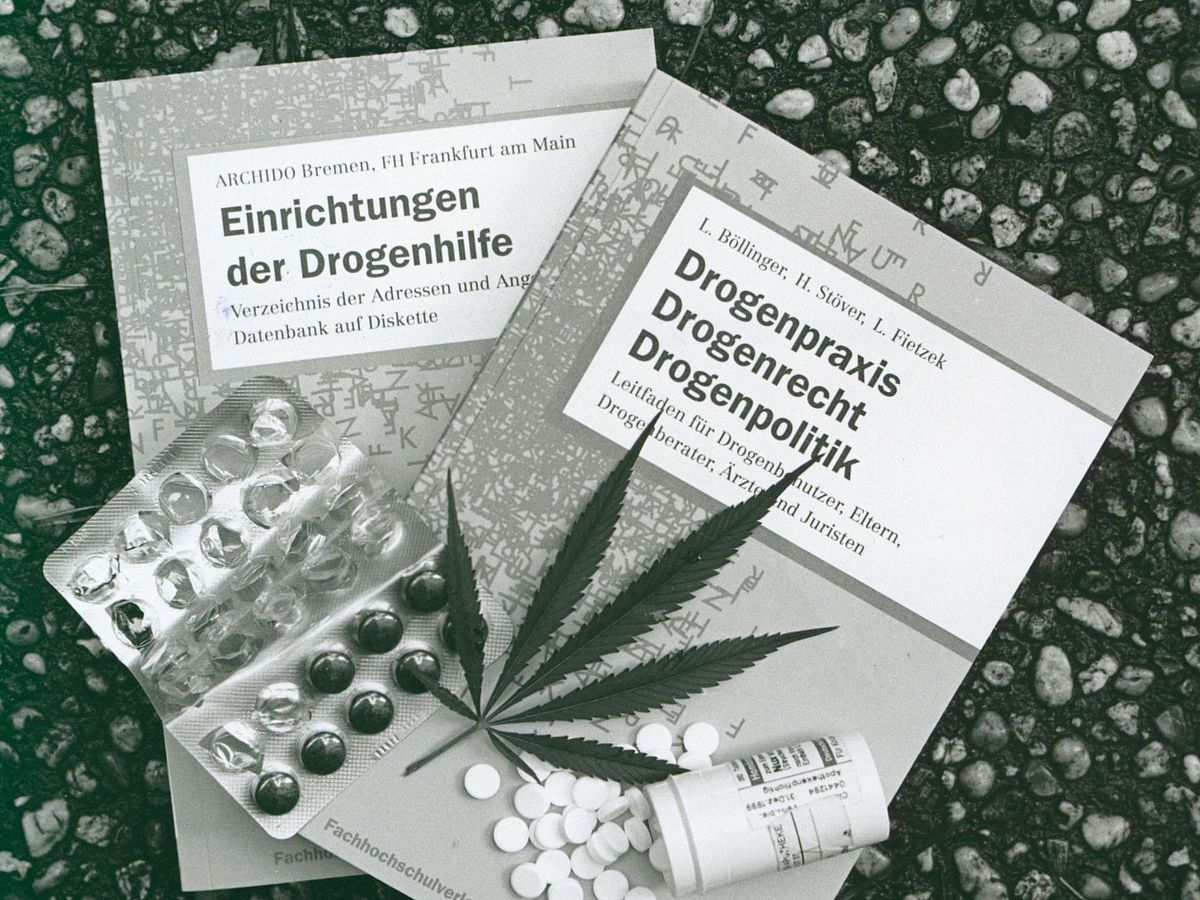 Foto: Buchpräsentation des 1995 erschienenen Leitfadens zu Drogenpraxis, Drogenrecht und Drogenpolitik