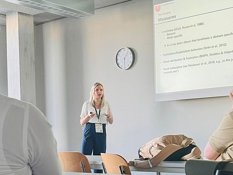 Die Studie entstand im Rahmen eines DFG-geförderten Forschungsprojekts in Zusammenarbeit mit Anna Dünnwald (Doktorandin in der gleichen Arbeitsgruppe). Anika Thurow stellte ein Forschungsprojekt zu Einsamkeit in UnternehmerInnen vor und zeigte auf, wie diese mit entsprechenden Herausforderungen umgehen.