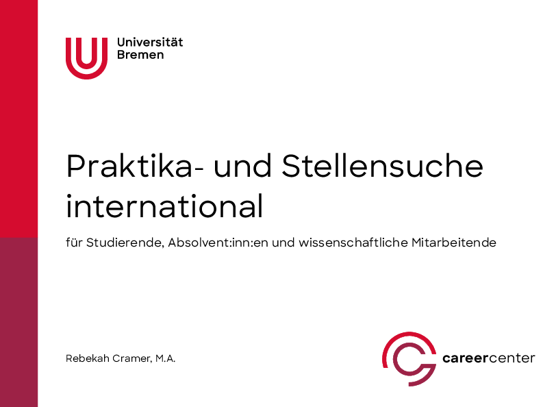 Zur Beachtung: Die weiterführenden und aktuellen Hinweise auf der Webseite des Career Center und regelmäßig über das Career Center angebotene Beratungen und Trainings - speziell für die Studierenden der Universität Bremen - ergänzen dieses Handbuch.