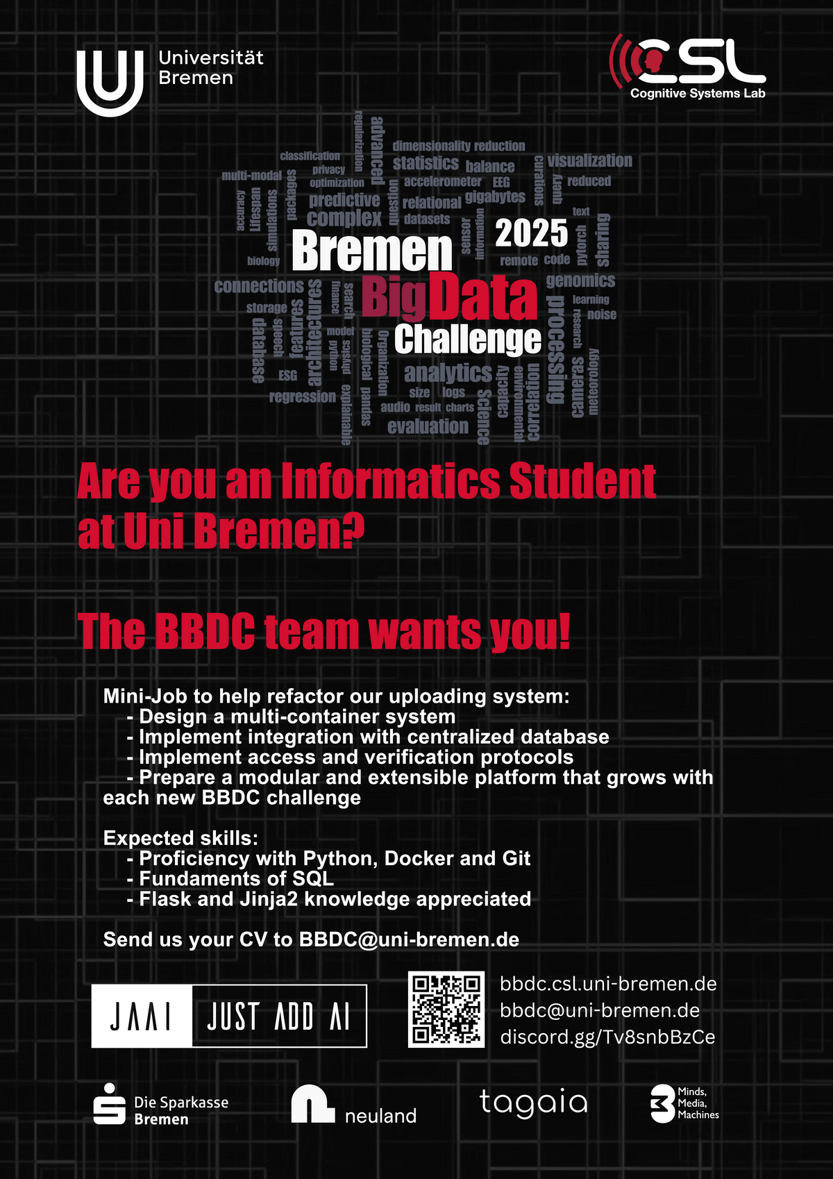 If you have good python and docker skills, and are interested to use them in a complex system, send us your CV to bbdcprotect me ?!uni-bremenprotect me ?!.de.