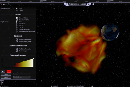 Another source of large-scale measured datasets is Earth observation. Not only terrain data are retrieved but also 3D atmospheric data are collected which can be used e.g. for climate research. Radar sensors can also provide data from within the crust of planets. Mantel convections, however, require again highly complexe simulations. One of the interactive exploration tools offering insight into those multi-variate and time-dependent datasets is CosmoScout VR.