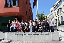 The alumni once more left Bremen early in the morning to spend an interesting and fantastic day in Berlin. We started off with a stroll through the zoo. The ‘Bremen way’ is not only a symbolic one – the city of Bremen donated 30,000 young trees to Berlin for their reforestation efforts! After a few minutes, we arrived at the diplomatic quarter where Ms. Kilian, the financial speaker of the Bremen representation, was waiting for us with information on their everyday work, on the eventful history of all of their moves, but mainly on the procedure of Bundesrat bills. Our eyes and ears in Berlin work diligently and in the best networks with the other federal states. Pilot projects, such as ELFE (Simple Service for Parents), underline Bremen’s leading role not only in technical basics but also as a provider of ideas and a trendsetter for Germany. After the visit to the Bundestag, alumna of the University of Bremen and parliamentarian Sarah Ryglewski welcomed us and answered all our questions. As Carsten Sieling’s successor, she serves as our representative on the finance and petitions committees. She participates in twenty meetings in Berlin throughout the year (which carry on into the night) and is politically active in Bremen the rest of the time. What a congenial and energetic politician!