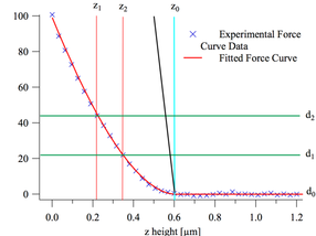 To allow the user to play around with this parameter, entering a new value will recalculate the simulated force curve, but not invoke a fit. If you wish to restart the fit, you will have to press the DoFit button.