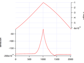 This application imports ASCII files, which have two columns of data: column 1 is the z position and column 2 is the deflection value, separated by a space. Data format is float, possible with an exponent excluding units. One typical line may look like: 1.023e-9 234.7e-9.