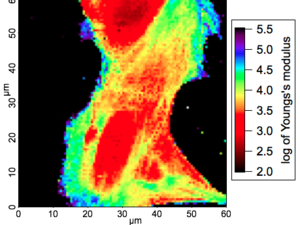 We have also included BEC (Bottom Effect Correction) fit functions, which correct for finite thickness of samples. As a general rule of thumb, when the indentation becomes larger than 10% of the sample thickness, the AFM tip will "feel" the underlying substrate. Thus the Young moduli calculated from a simple Hertz fit will be systematically to high. This artefact can change values by an order of magnitude or even two. Richard Chadwick has therefore developed a correction factor, which can be added to the Hertz fit to incorporate this effect. The only parameter is the sample thickness, which has to be determined independently, e.g. by comparing the contact point of the force curve of interest on a cell, and another force curve nearby, but on the substrate. The thickness is a parameter and cannot be determined by the fit routine itself.