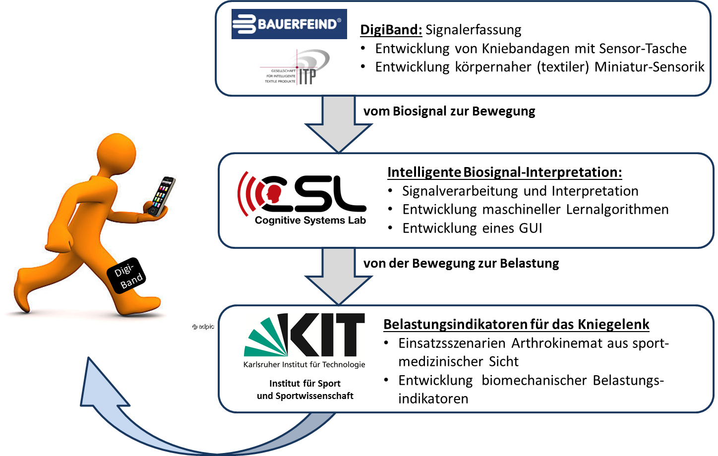 The project involves four partners: Institut für Sport und Sportwissenschaften, Karlsruher Institut für Technologie (Karlsruhe), CSL Universität Bremen (Bremen), ITP GmbH (Chemnitz), Bauerfeind AG (Zeulenroda-Triebes).