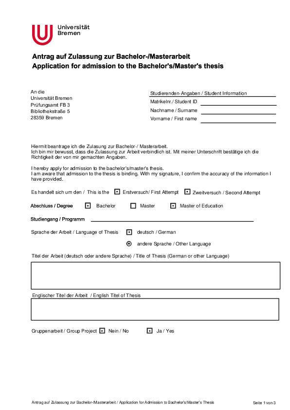 "Mathematics Master of Education" is at the Central Examination Office www.uni-bremen.de/zpa/