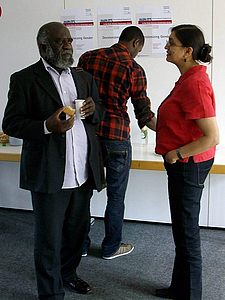 The rest of the day was dedicated to African diasporas, which was introduced by sociologist Sérgio Costa (Berlin). He examined the transnational integration of the Brasilian "Movimento Negro" into the so-called "Black Atlantic" and the correlating positions in policies. His contribution, The Black Atlantic and National Public Spheres, referred to Paul Gilroy and Stuart Hall's studies, which he connected to the highest population of African descendants outside of Africa - the Afro-Brazilians. Costa concluded with the importance of an interdisciplinary discourse in this respect and emphasized how essential it is to include the asymmetrical power relations in research.