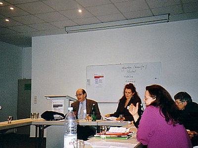 Febel pointed out that we had mostly been talking about strategies and tactics to attain a certain position on the term "transculturality". The question remained whether it was possible to talk about transcultural indentities at all or think about a specific form of individual performances in respect to permanent processes of identification. Furthermore, the discussion about a possible transcultural policy brought up the question of political empowerment and policies of exclusion and inclusion. It was emphasized that migration, the process of modernity, and an imaginary economy of transculturalism are correlated and that rethinking concepts of transculturality and diaspora are essential, despite the fact that the sense of memory and history is very important in this respect. To sum it up, two levels of transculturality were worked out: transculturality related to an approach in a postcolonial context and the transculturality of a new migration leading into new form of diaspora. The evening drifted into lively discussions continued over coffee and dinner.