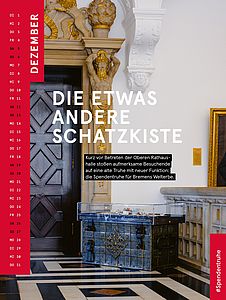 Students of Public History have developed a somewhat different tour of Bremen’s Town Hall: Using twelve objects, they present their individual insights into the more than 600-year history of Bremen’s World Heritage Site in the form of a calendar.