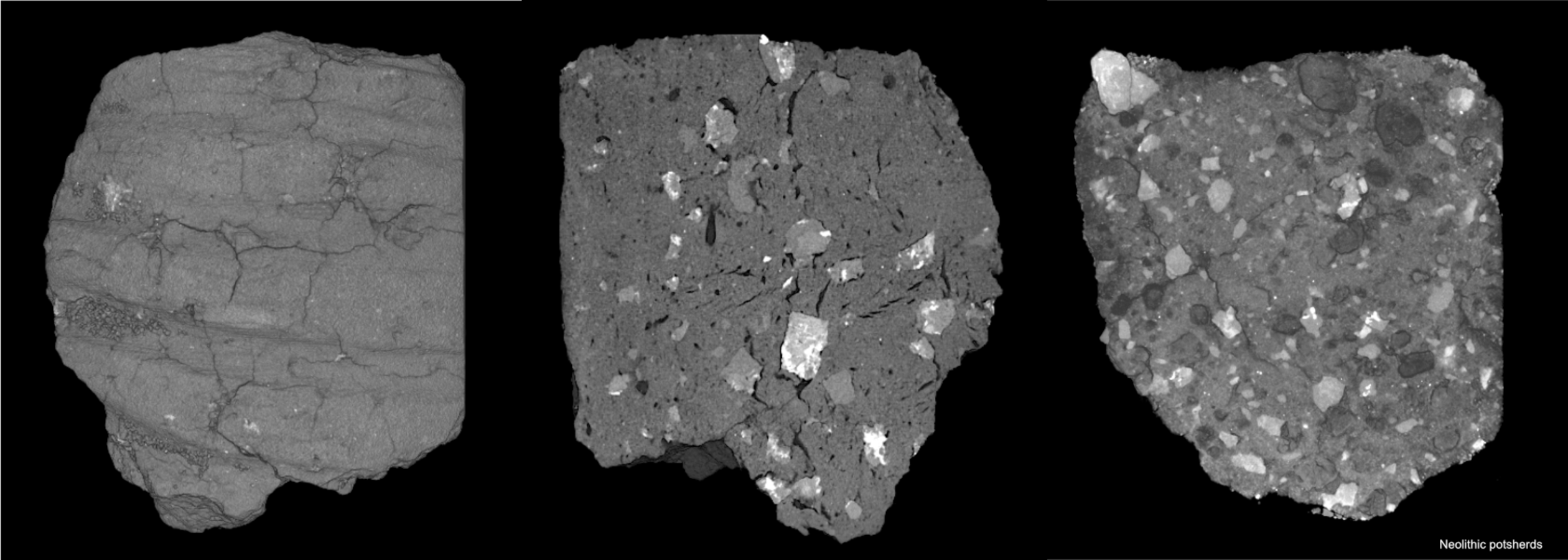 Our methods are based on the detection and subsequent localization of the degree of attenuation of the incident X-rays in the sample. The attenuation of X-rays by matter depends on both the chemical elements it consists of as well as the material density. The information about the varied X-ray absorption is encoded as grey values in the black-and-white images. The volume reconstruction facilitates, e.g.., visualization of fabric compounds as 3D models, or preparation of virtual thin sections in any desired direction.