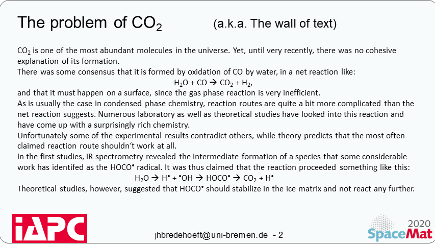 Carbon dioxide (CO2) is one of the most abundant molecules in the Universe, yet the exact pathway of its formation was under some considerable dispute until recently. The thorough investigation of the radiation-chemistry of ices made from water and carbon monoxide revealed surprising insights about the formation of CO2. Secondary electron-driven processes dominate chemistry in space and need to be considered when designing materials for the extreme conditions of space exploration.