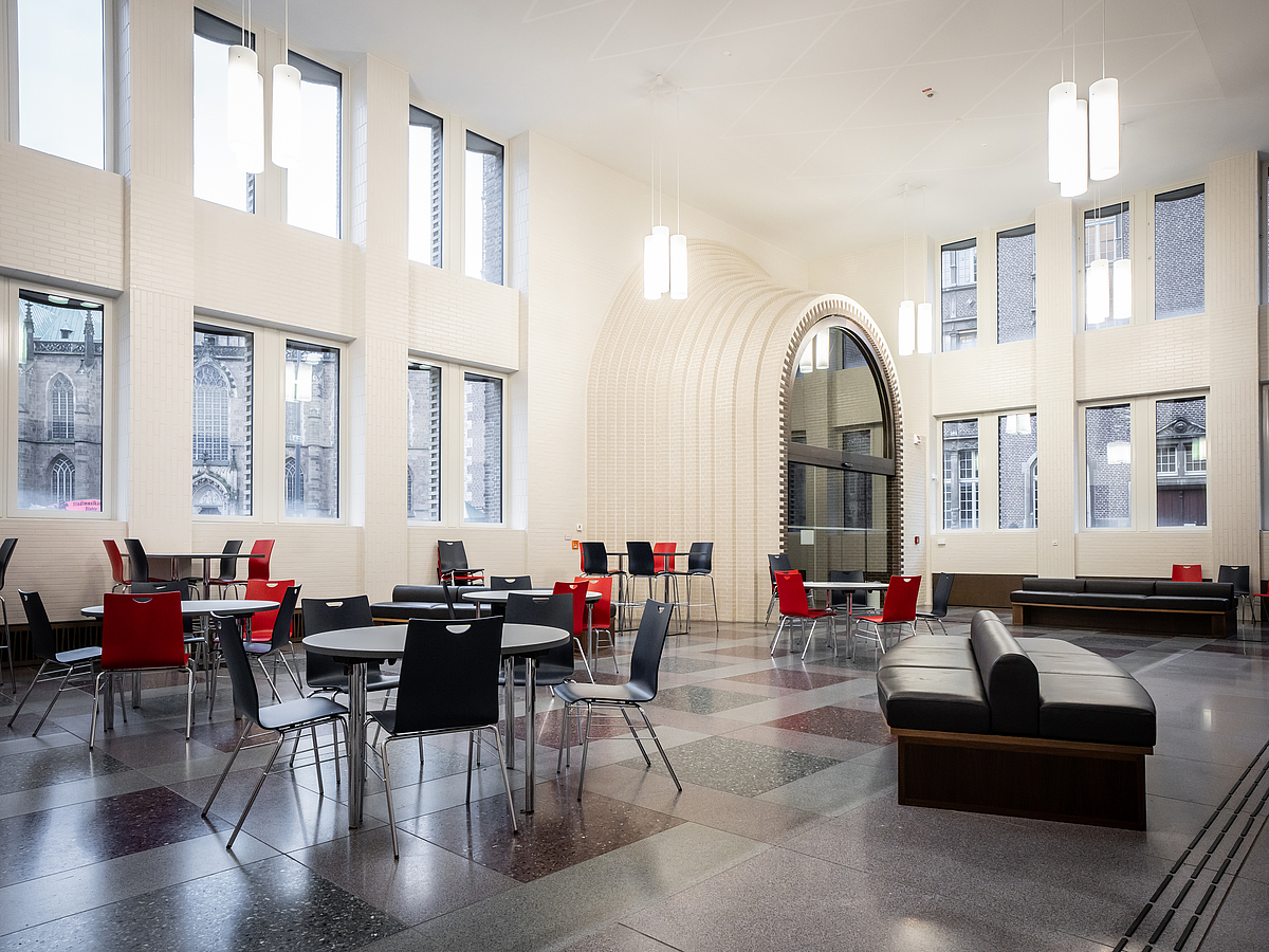 On the ground floor of Forum am Domshof - just beyond the grand foyer - the Banking Hall is being transformed into a multifunctional meeting space. Here, the University of Bremen will showcase its rich interdisciplinary diversity and foster vibrant exchange between the university and the city. This “third place” invites dialogue, interactive knowledge sharing, and creative exploration at the intersection of science, research, and society.