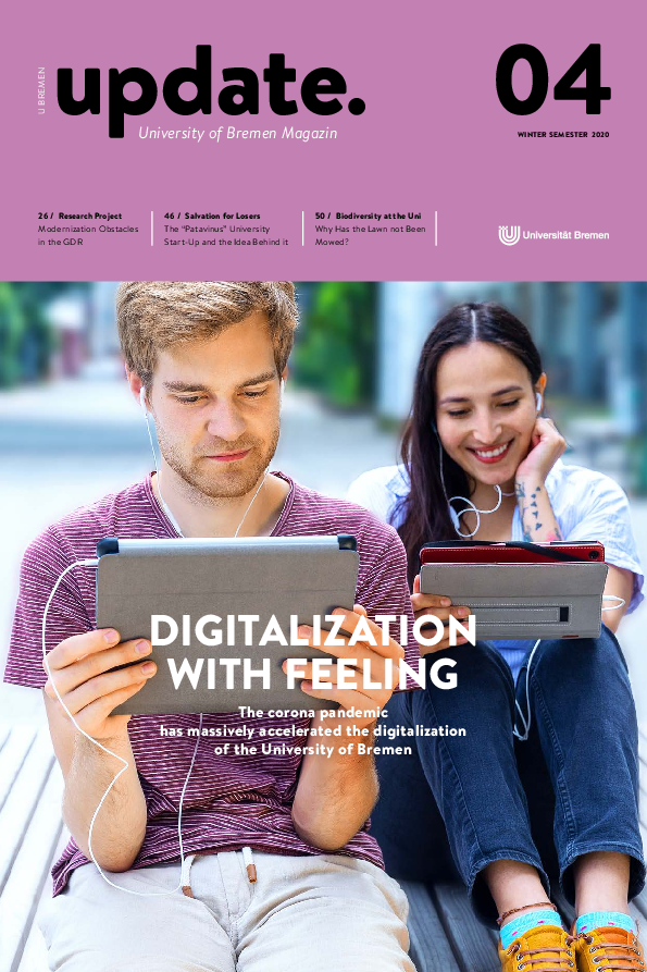 The update. magazine portrayed the university in all its facets: It provides clear and comprehensible stories from research, as well as insights into teaching, studies and campus life. In addition, it reports on strategic decisions at the university and their effect on the future.