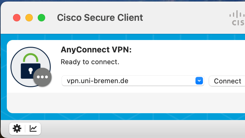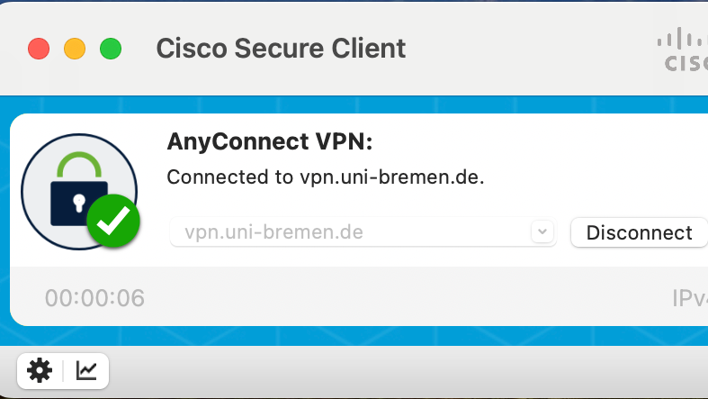 To access these services from home or on the road, you must install a so-called VPN client software (Cisco Secure Client or OpenConnect) on your device once and establish a connection to the campus with the VPN client before each access to the restricted services. This means that you are "virtually" on campus and can use the services you are used to.