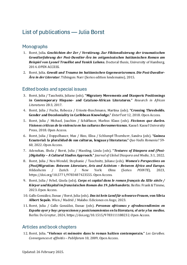"Die spanische Black Diaspora: Afro-spanische Literatur des 20. und 21. Jahrhunderts" (gefördert durch die Deutsche Forschungsgemeinschaft (DFG), Projektnummer 353492083)