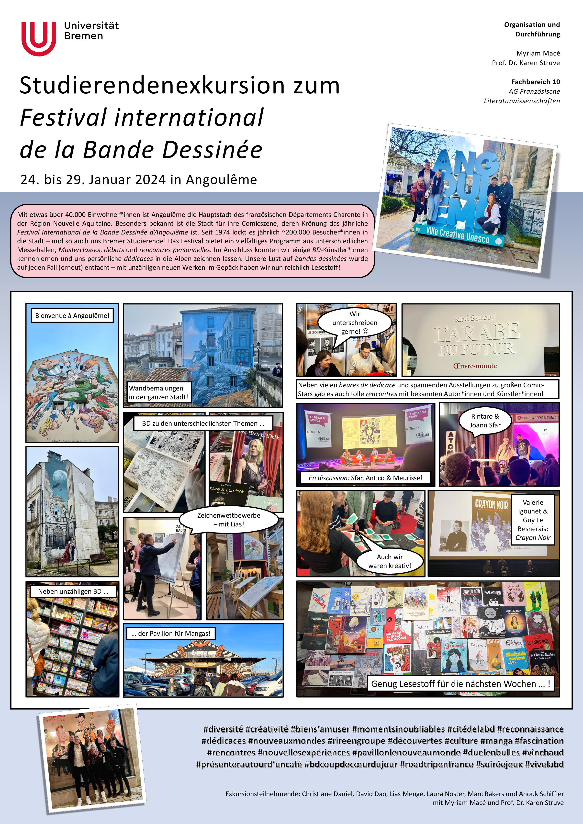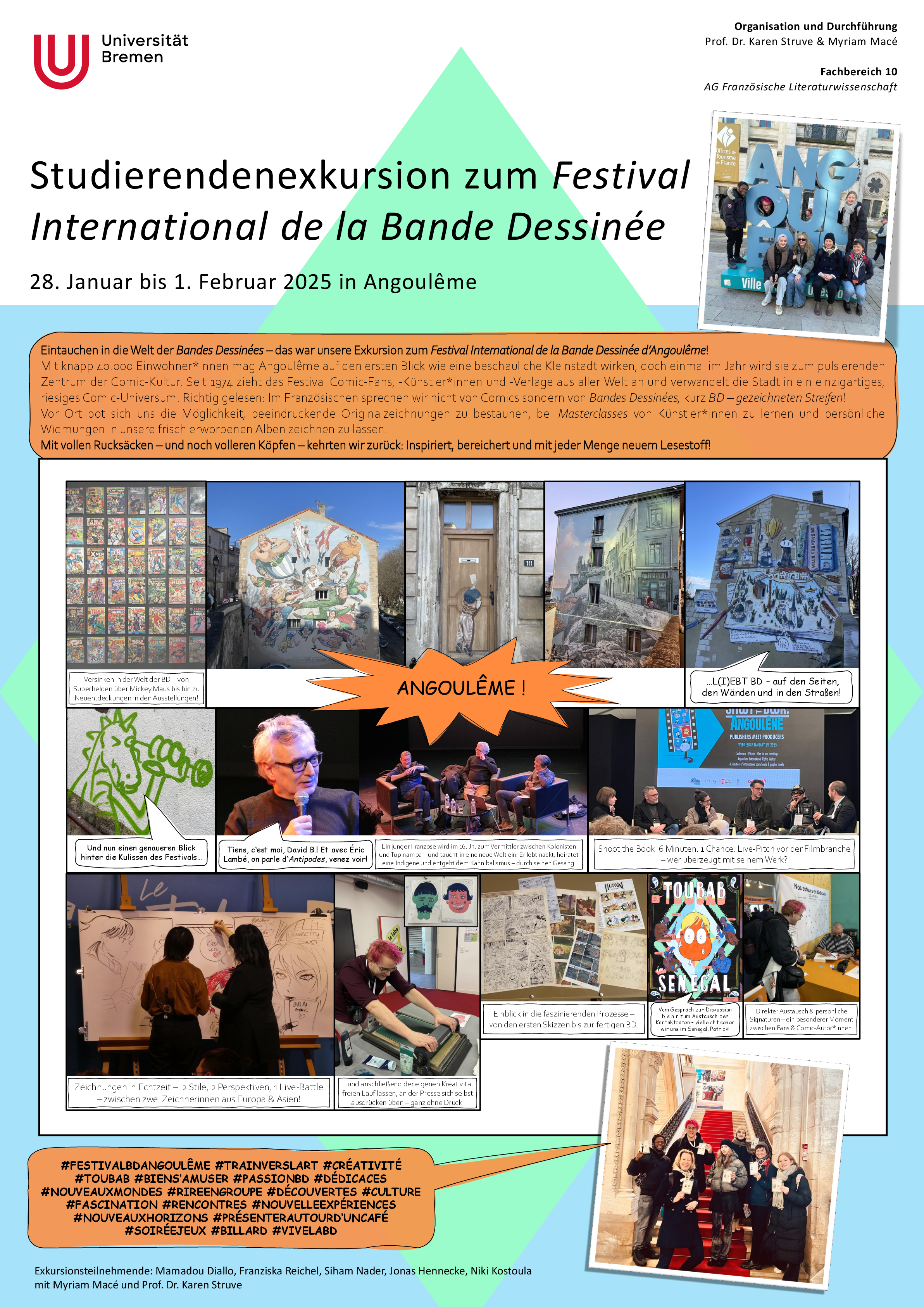 Dateiname: Plakat_Angouleme_2025.pdfÄnderungsdatum: 26.06.2025Studierendenexkursion zum Festival international de la Bande Dessinée