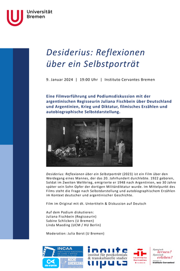 Desiderius: Reflexionen über ein Selbstporträt (2023) ist ein Film über den Werdegang eines Mannes, der das 20. Jahrhundert durchlebte. 1922 geboren, Soldat im Zweiten Weltkrieg, emigrierte er 1948 nach Argentinien, wo 30 Jahre später sein Sohn Opfer der dortigen Militärdiktatur wurde. Im Mittelpunkt des Films steht die Frage nach Selbstdarstellung und autobiographischem Erzählen im Kontext deutscher und argentinischer Geschichte.