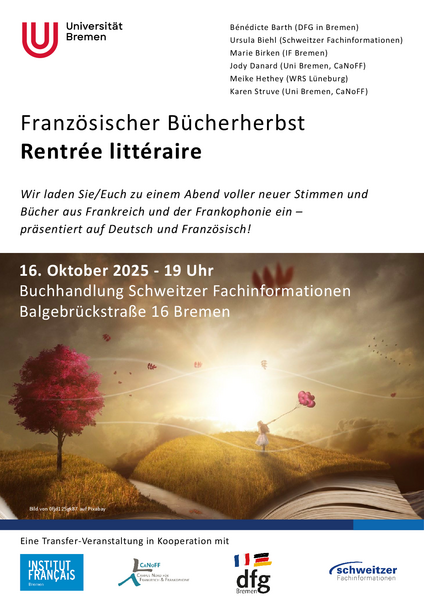 Wir laden Sie/Euch herzlich ein, in der Schweitzer Buchhandlung neue literarische Stimmen aus Frankreich und der Frankophonie zu entdecken und Einblicke in die Themen und Werke zu erhalten, die derzeit die französische Literaturszene bewegen.