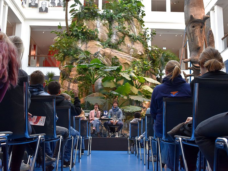Im Rahmen der jungen globale°, dem Programm des Literaturfestivals globale° für ein junges Publikum, las Jakob Graf aus seinem Jugendroman Auf dem Tigerpfad (2025) im Übersee-Museum Bremen vor einer stimmungsvollen Kulisse. Wie kann Kungfu dabei helfen, den Verlust eines geliebten Menschen zu überwinden und sich selbst zu finden? Diesen Fragen gingen Bremer Schüler*innen zwischen der 5. und 8. Klasse vor allem lauschend, aber auch diskutierend und aktiviert durch die ein oder andere Kungfu-Übung nach. Das Gespräch moderierte Myriam Macé, die seit September 2025 die Koordiantion der jungen globale° übernommen hat.