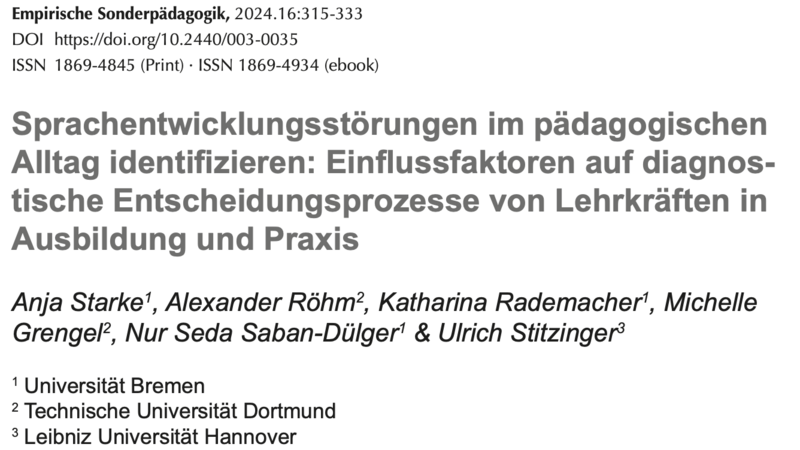 Die im Artikel dargestellte Studie geht der Frage nach, welche Faktoren diagnostische Entscheidungsprozesse im Zusammenhang mit SES beeinflussen. Dazu wurde mit 454 Lehrkräfte aus Primar- und Sekundarstufe unterschiedlicher Ausbildungs- und Praxisphasen ein Online-Experiment durchgeführt. Bezüglich der diagnostischen Entscheidungen und zugeschriebenen Ursachen zu einem fiktiven Fallbeispiel in diesem Experiment zeigten sich keine Unterschiede zwischen den unterschiedlichen Ausbildungs- und Praxisphasen sowie den Schulstufen. Die Lehrkräfte identifizierten weitestgehend zuverlässig sowohl sprachlich-kommunikative als auch sozial-emotionale Förderbedarfe. Erstgenannte konfundieren jedoch mit dem gleichzeitigen Vorliegen von Hinweisen auf Mehrsprachigkeit. Insgesamt stiegen die Lehrkräfte zunächst offen in den diagnostischen Prozess ein und konnten bei einer gewissen Deutlichkeit der Symptomatik entsprechende Entwicklungsbereiche adäquat fokussieren. Deutlich wurde aus den Ergebnissen jedoch auch, dass es einer stärkeren Sensibilisierung während der Lehramtsaus- und Weiterbildung für die Verwobenheit der einzelnen Entwicklungsbereiche bedarf.