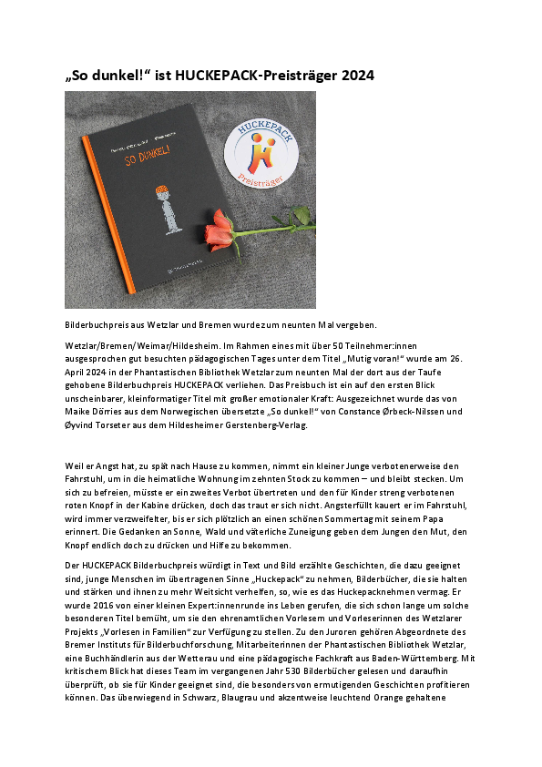 Dateiname: HUCKEPACK-Preis_2025.pdfÄnderungsdatum: 23.05.2025So dunkel! von Constance Ørbeck-Nilssen (Text) & Øyvind Torseter (Illustration)