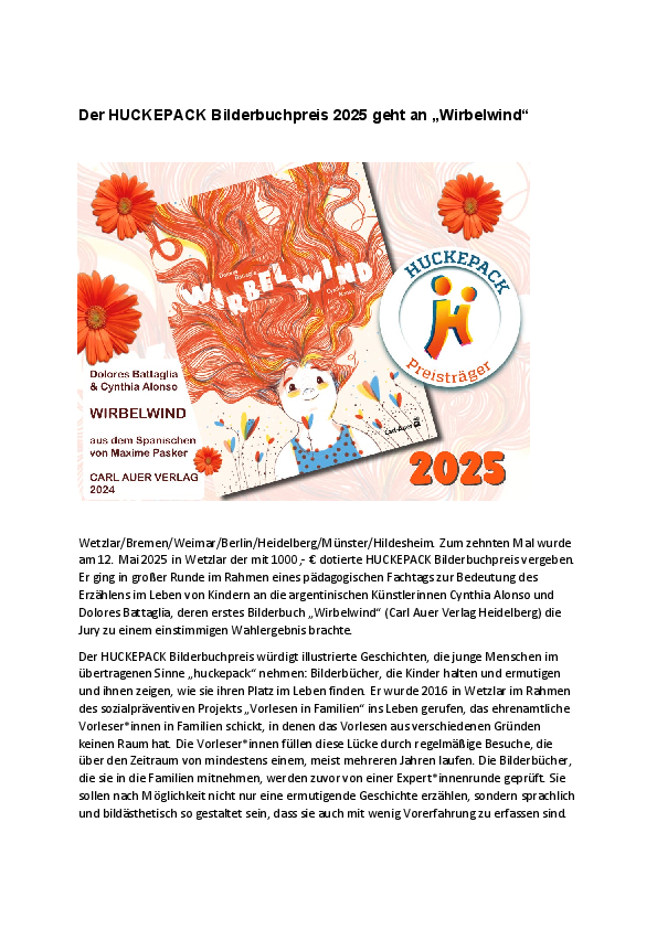 Dateiname: HUCKEPACK-Preis_2018.pdfÄnderungsdatum: 15.09.2021Klein von Stina Wirsén