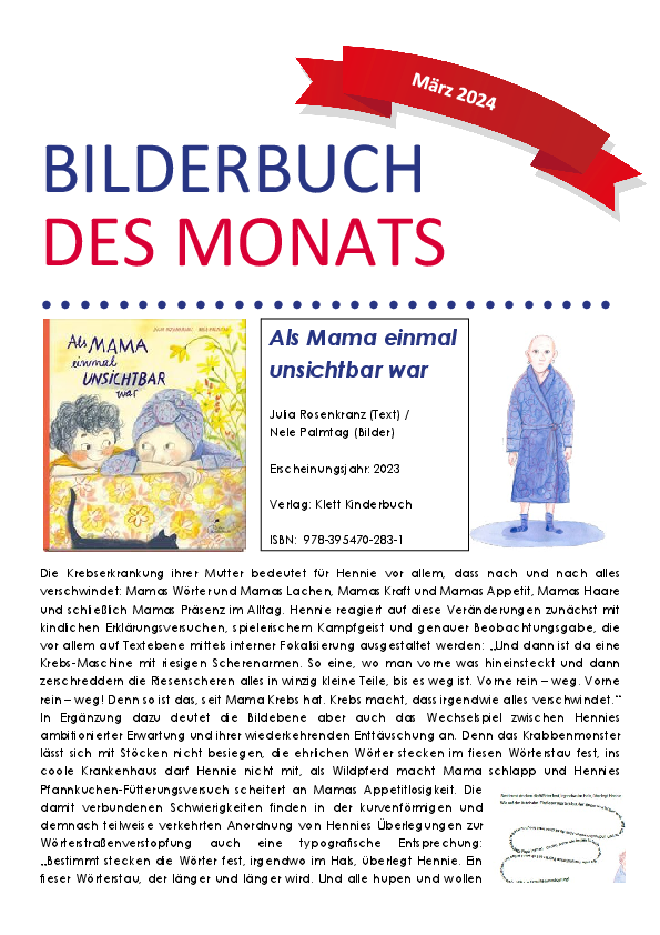 Dateiname: 06.2024.pdfÄnderungsdatum: 08.08.2024Bilderbuch des Monats März: Als Mama einmal unsichtbar war
