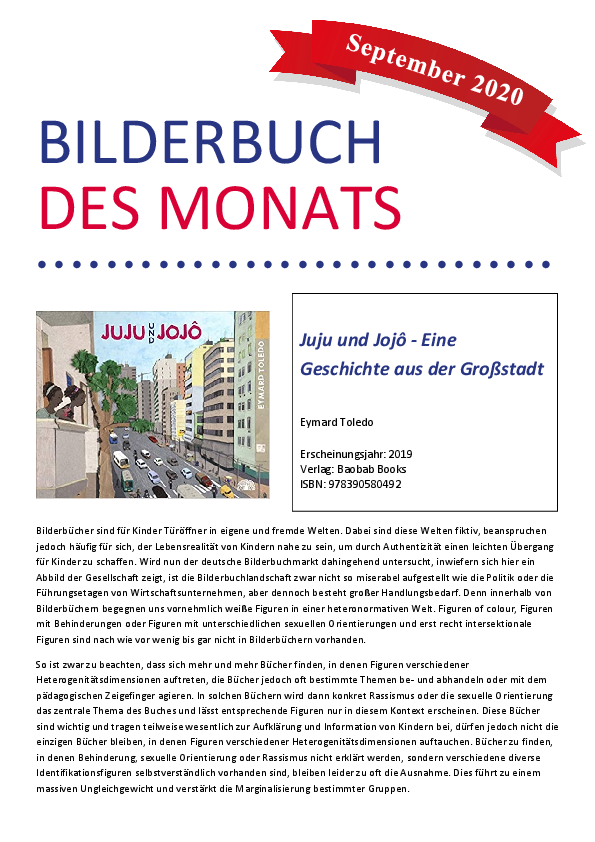 Dateiname: 10.2020.pdfÄnderungsdatum: 18.11.2021Bilderbuch des Monats September: Juju und Jojô