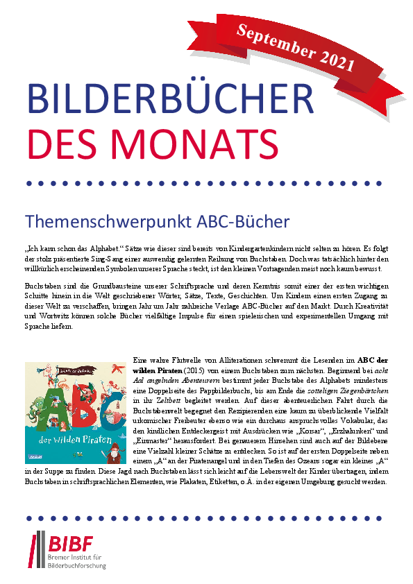 Dateiname: 10.2021.pdfÄnderungsdatum: 12.11.2021Bilderbücher des Monats September: Themenschwerpunkt ABC-Bücher