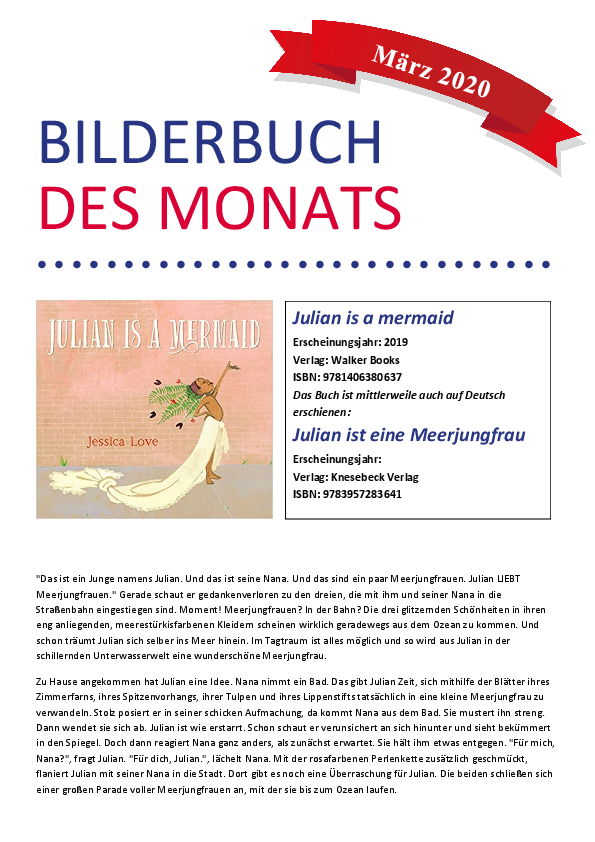 Dateiname: 04.2020.pdfÄnderungsdatum: 05.10.2021Bilderbuch des Monats März: Julian is a mermaid