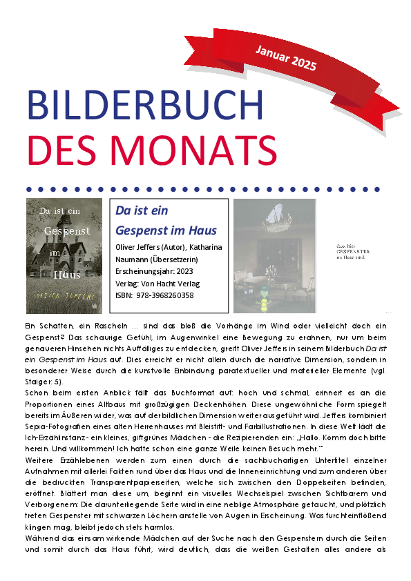Dateiname: 02-2025.pdfÄnderungsdatum: 14.02.2025Bilderbuch des Monats Januar: Da ist ein Gespenst im Haus