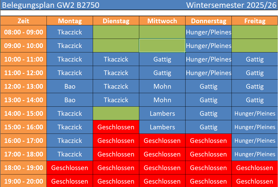 Alternativ kann der Benutzer:innen-Antrag auch im Büro B2740 zu den unten genannten Zeiten abgegeben werden.