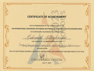 - Thermal transport in 3C-SiC studied by Raman thermometry, by Mahmoud Elhajhasan