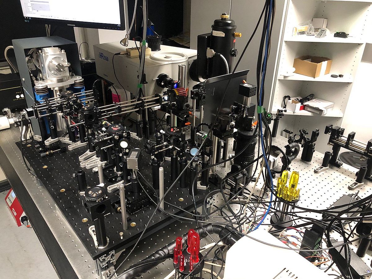 In this laboratory samples like semiconductor nanostructures can be characterized by Photoluminescence and Raman spectroscopy, yielding optical and thermal material properties. The methods used in the fully customized setup include one- and two-Laser Raman Thermometry (1LRT and 2LRT) in addition to micro-photoluminescence (µPL) and conventional Raman spectroscopy. In addition, also time-resolved µPL measurements are possible, enabling an estimation of the internal quantum efficiency, which is often a vital parameter for quantitative thermometry. The lab features a large variety of different lasers suitable for time-resolved spectroscopy and Raman spectroscopy. Furthermore, also a ultra-low vibration He-cryostat is installed, which enables measurements down to 4 K. Mapping of all structures with sub-µm spatial resolution is enabled by a variety of piezo-stages.