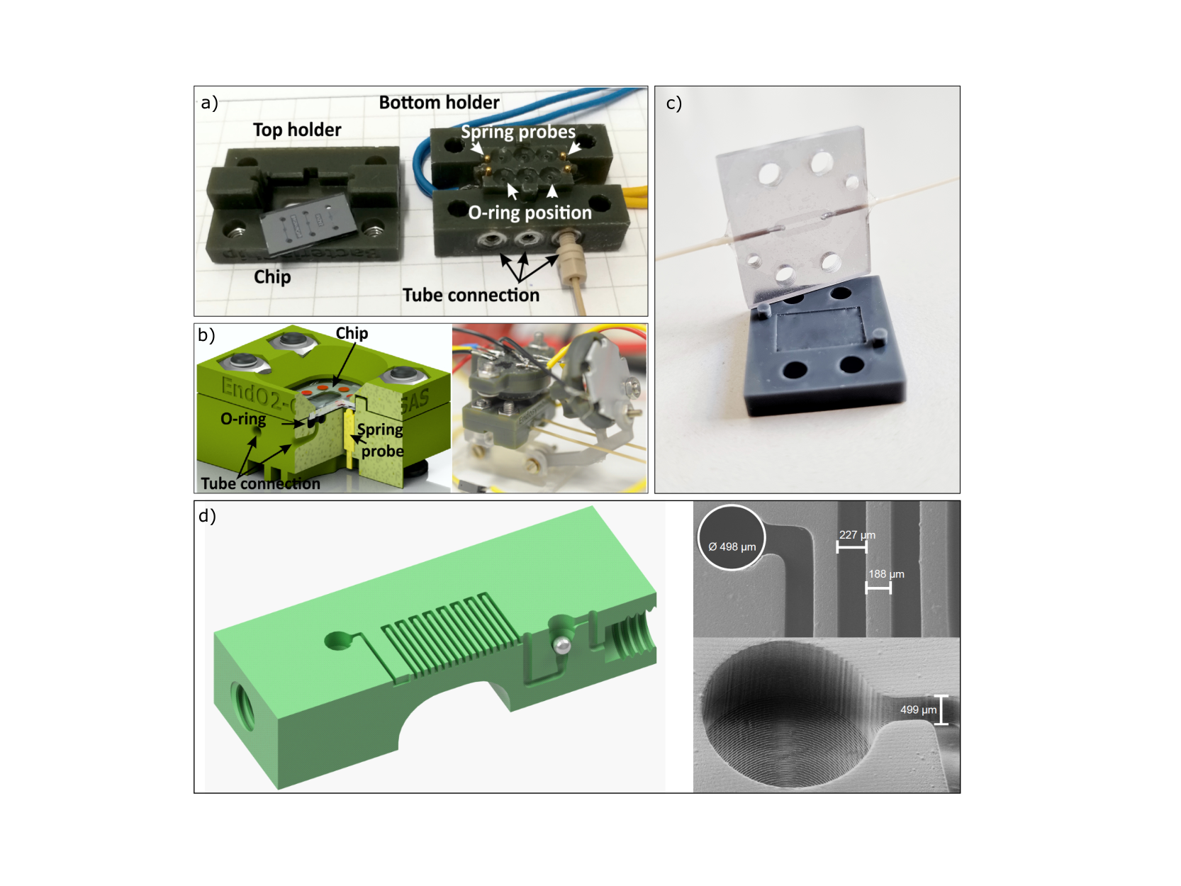 Zuverlässige Verbindungen mit der Makrowelt stellen bei mikrofluidischen Systemen oft das größte Hindernis dar. Wir verfolgen den Ansatz, maßgefertigte Chiphalter und Messaufbauten mittels 3D-Druck zu erstellen, sowie die planare Chiptechnologie durch komplett gedruckte fluidische Systeme zu erweitern.