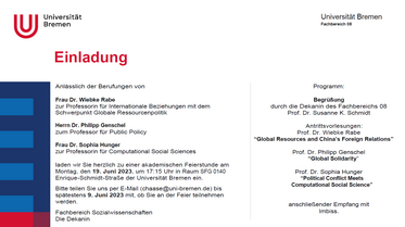Antrittsvorlesungen von Wiebke Rabe & Philipp Genschel