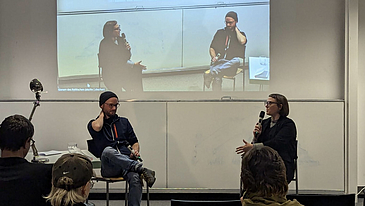 So vergnüglich wie konstruktiv-kritisch ging der Abend bei schummrigem Licht und gemütlicher Atmosphäre im sonst so kühlen GW2 weiter. Nach einleitenden, persönlichen Worten der Moderatorin Carolin Zieringer, folgten Würdigungen der Gutachter*innen der Arbeit, Martin Nonhoff und Franziska Martinsen.