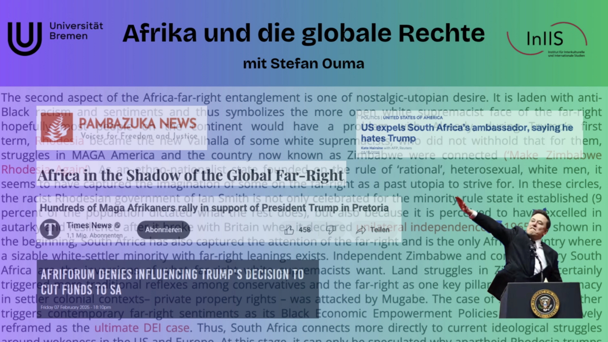 In dieser Folge wird der Artikel "Africa in the Shadow of the Global Far-Right" von Stefan Ouma (Universität Bayreuth), die Rolle von Afrika in rechten Diskursen und die Frage, ob auch die deutsche Rechte für diese Ideen empfänglich ist, besprochen.