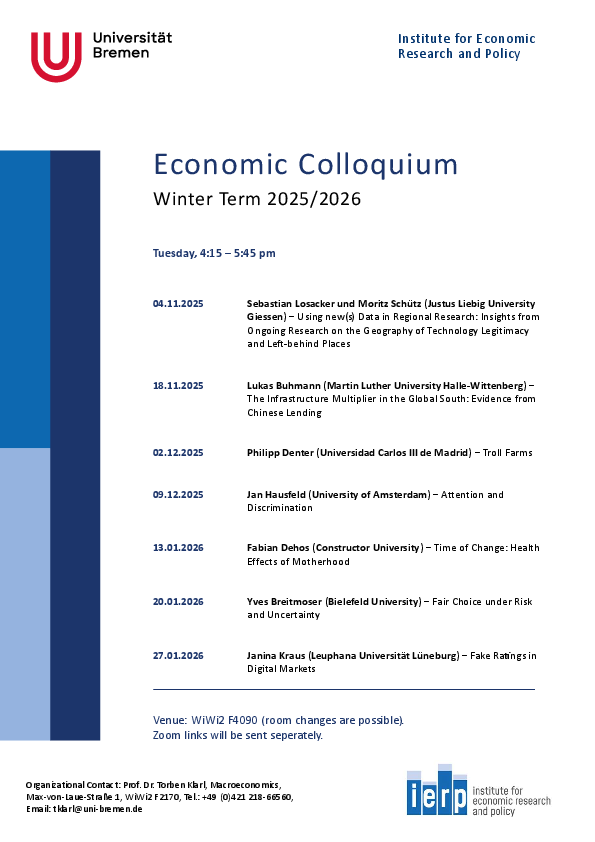 Bei Fragen zum Economic Colloquium wenden Sie sich an: tklarl@uni-bremen.de