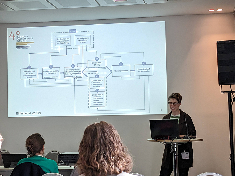 Besonders freuen wir uns, dass Mitglieder unserer Arbeitsgruppe mit spannenden Beiträgen vertreten waren. Telse hielt einen aufschlussreichen Vortrag zum Thema "Youth Mental Health Infrastruktur: Eine Plattform zur Stärkung der psychischen Gesundheit von Kindern und Jugendlichen in Schule und Kita", der großes Interesse weckte. Darüber hinaus gaben Tilo und Pauline einen Einblick in ihre neuesten Studienergebnisse zu Perfektionismus und Emotionsregulation im Rahmen der Posterpräsentation. Ein weiteres Highlight war das von Nathalie organisierte Symposium, welches sich mit dem Thema experimentelle Psychopathologie anhand innovativer Induktionstechniken befasste. Dieses Symposium zog viele Zuhörer an und bot spannende Einsichten in aktuelle Forschungstrends.