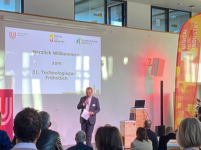 Am 6. November 2025 fand das 31. Technologiepark-Frühstück im Digital Hub Industry (DHI) im Technologiepark Bremen statt. Nach der Begrüßung durch Anne-Kathrin Guder, Geschäftsführerin des Technologiepark Uni Bremen e.V., und Prof. Dr. Michal Kucera, Konrektor für Forschung und Transfer der Universität Bremen, hieß auch Christoph Ranze, stellvertretender Vorsitzender des DIGITAL HUB INDUSTRY Bremen e.V., die zahlreichen Gäste willkommen. Prof. Dr. Tobias Röth, Prof. Dr. Katharina Brinkert und Dr. Jan Wedemeier gaben in ihren Kurzvorträgen jeweils Einblicke in ihre aktuellen Forschungsfelder und Aktivitäten. Sie zeigten eindrucksvoll, wie vielfältig und dynamisch die wissenschaftliche Arbeit im Technologiepark ist.