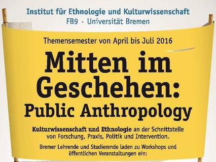 Durch das Themensemester Public Anthropology am Institut für Ethnologie und Kulturwissenschaft wurden bewährte und neue Praxisfelder für die Studierenden beleuchtet. Wo finden sich ethnologische Themen und Kulturkonzepte in der öffentlichen Politik und Debatten der Einwanderungsgesellschaft? Wie wirkt ethnologische Forschung auf die Gestaltung von staatlichen Institutionen oder den Kulturbetrieb? Wo werden Kulturwissenschaftler:innen heute dringend gebraucht?