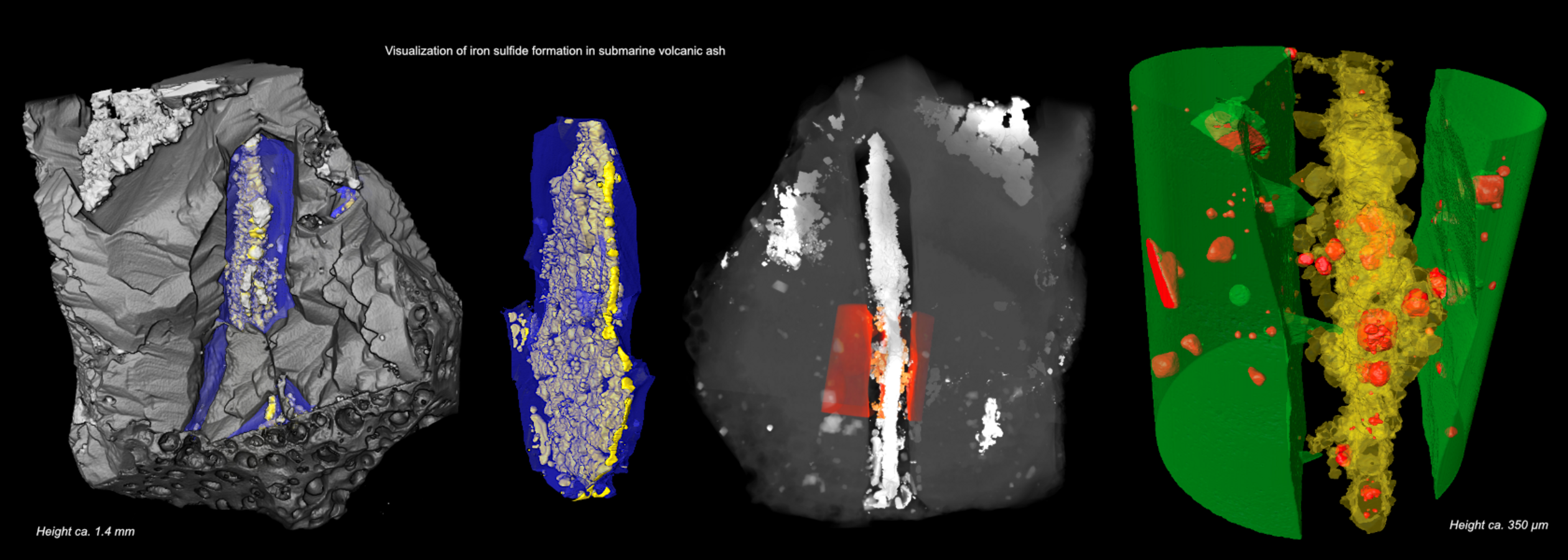 Our methods are based on the detection and subsequent localization of the degree of attenuation of the incident X-rays in the sample. The attenuation of X-rays by matter depends on both the chemical elements it consists of as well as the material density. The information about the varied X-ray absorption is encoded as grey values in the black-and-white images. The volume reconstruction facilitates, e.g.., visualization of fabric compounds as 3D models, or preparation of virtual thin sections in any desired direction.