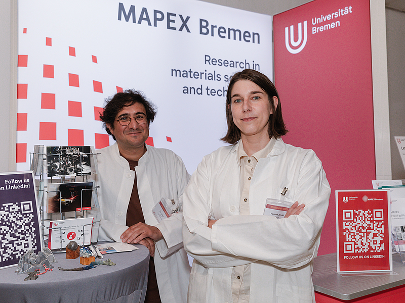 Hoch wardie Nachfrage nach Positionen als studentische:r Mitarbeiter:in in konkreten Forschungsprojekten, Masterstudiengängen und Promotionsmöglichkeiten. Bachelorstudierende bereitet der vom MAPEX initiierte Masterstudiengang Prozessorientierte Materialforschung (ProMat) optimal auf eine Promotion vor. Eine Promotion in den Natur- und Ingenieurwissenschaften eröffnet erstklassige Berufsaussichten in der Forschung und der Industrie. Doktorand:innen am MAPEX sind Teil eines der führenden Materialforschungsverbünde Deutschlands. Sie profitieren von einem exzellenten Netzwerk vor Ort, das mehr als 1000 wissenschaftliche und technische Mitarbeitende verbindet. Sie arbeiten direkt auf dem Campus mit Partner:innen aus Forschung und Industrie zusammen. Außerdem kooperieren sie mit renommierten Instituten wie dem Leibniz-Institut für Werkstofforientierte Technologien (IWT), dem Fraunhofer-Institut für Fertigungstechnik und Angewandte Materialforschung (IFAM), dem Faserinstitut Bremen e.V. (FIBRE), dem Bremer Institut für angewandte Strahltechnik GmbH (BIAS) und dem DLR Institut für Raumfahrtsysteme.