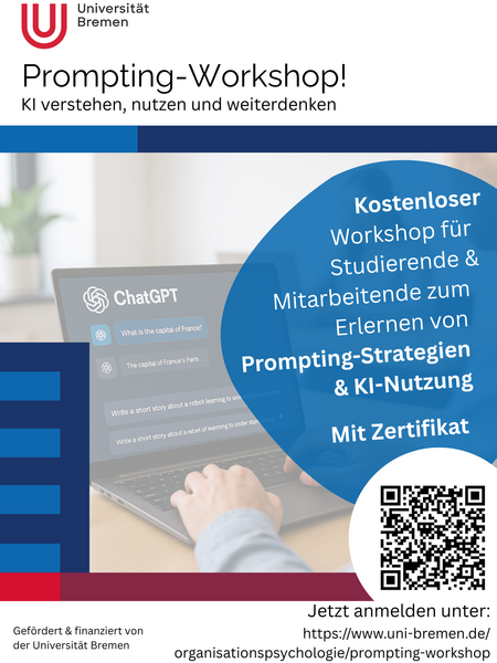 Alle Teilnehmenden, die den Workshop besuchen und an der begleitenden Evaluation teilnehmen, erhalten eine offizielle Teilnahmebestätigung der Universität Bremen.