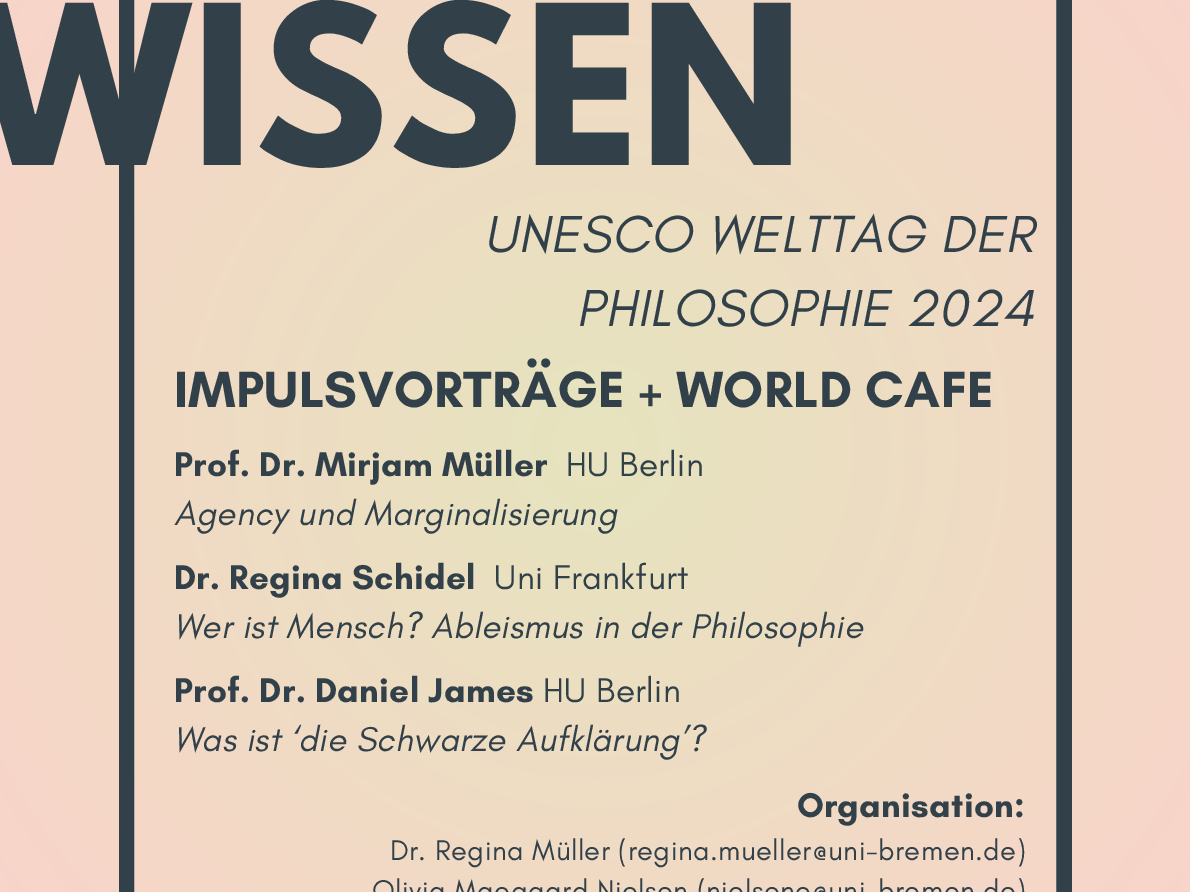 Regina Müller beteiligt sich am Frauen-Kultur-Festivals „GroßARTige Frauen“ mit einem Vortrag „Strukturelle Ungerechtigkeit(en) – Philosophie als Widerstand: Mit Reflexion und Verantwortung gegen das Unsichtbare“. Der philosophische Input wird musikalisch umrahmt durch Lola Atkinson (Harfe).