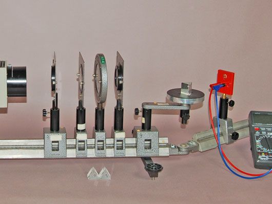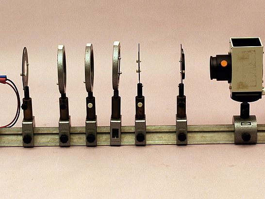 Untersuchung der Winkelverteilung der Intensität von elliptisch, zirkular und linear polarisiertem Licht, Doppelbrechung an einer Lambda/4-Platte.
