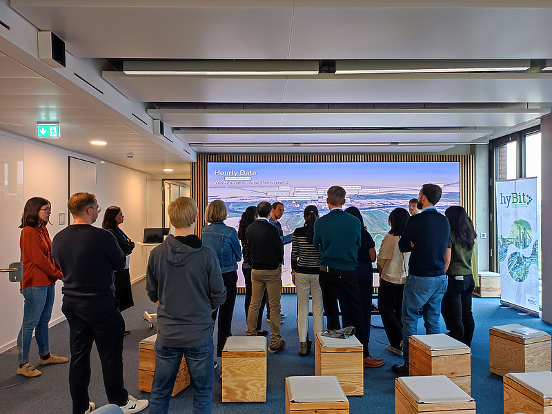 Am 18. September 2025 besuchten mehr als 20 WissenschaftlerInnen der DAAD Green Hydrogen Research Tour 2025 das Fachgebiet Resiliente Energiesysteme (FGRES) an der Universität Bremen. Die DAAD Green Hydrogen Tour richtet sich an NachwuchswissenschaftlerInnen aus aller Welt, die renommierte deutsche Einrichtungen besuchen, die aktiv zur Forschung im Bereich grüner Wasserstoff beitragen. Sie erhalten aus erster Hand Informationen über vielversprechende Forschungsergebnisse und technologische Entwicklungen auf dem Weg zu einer grünen Wasserstoffwirtschaft. Während ihres Besuchs beim FGRES wurden die Teilnehmenden in die wichtigsten FGRES Forschungsbereiche und Projekte (hyBit, Know:Ur:Heat und Bestville) eingeführt und erhielten im Rahmen einer Postersession Einblicke ins Kausalschleifendiagramm und die Forschungsrichtungen von hyBit. Abschließend hatten sie die Möglichkeit, sich über das QScope Decision Support Tool zu informieren und interaktiv mit der Virtual Transformationsplattform zu arbeiten.